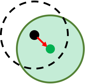 The dotted line is the original privacy zone and the green circle is the shifted privacy zone.