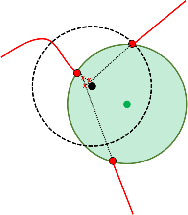 This method has obvious limitations: in such a basic implementation where all trajectories end at the boundary of the privacy zone which is a perfect circle, it only needs a few points to be able to reconstruct the center of that circle, i.e., the sensitive location.