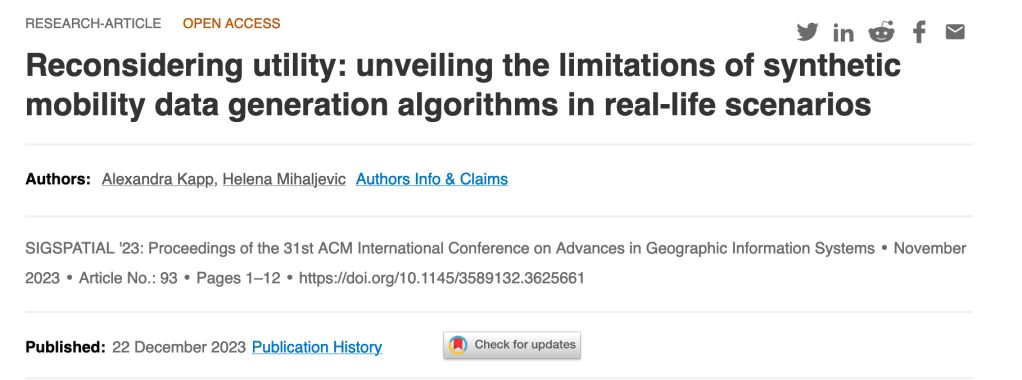 Typically, such synthetic data models are evaluated by comparing distributions, e.g., the spatial distribution, between raw and synthetic data. The higher the similarity the higher the utility is considered.